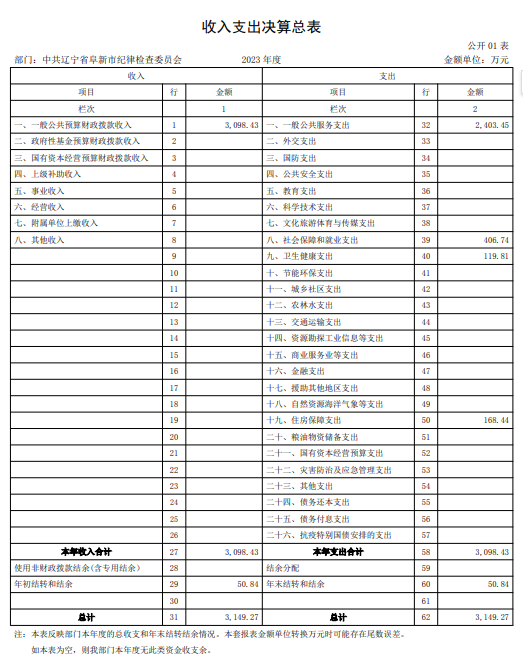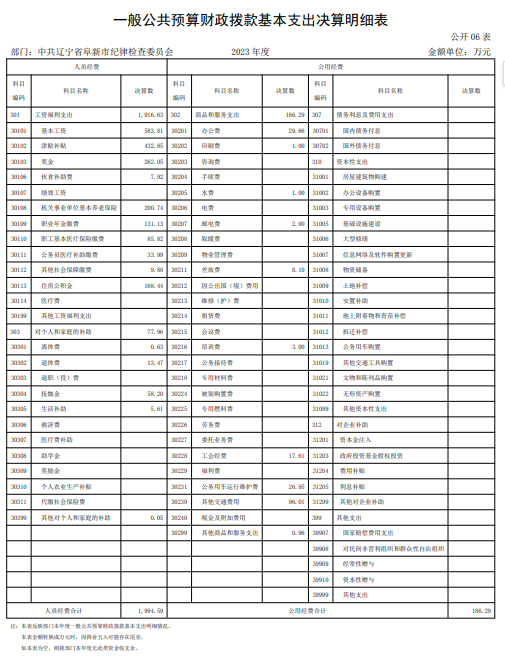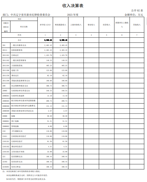 第四部分 2023年度中共辽宁省阜新市纪律检查委员会部门决算表