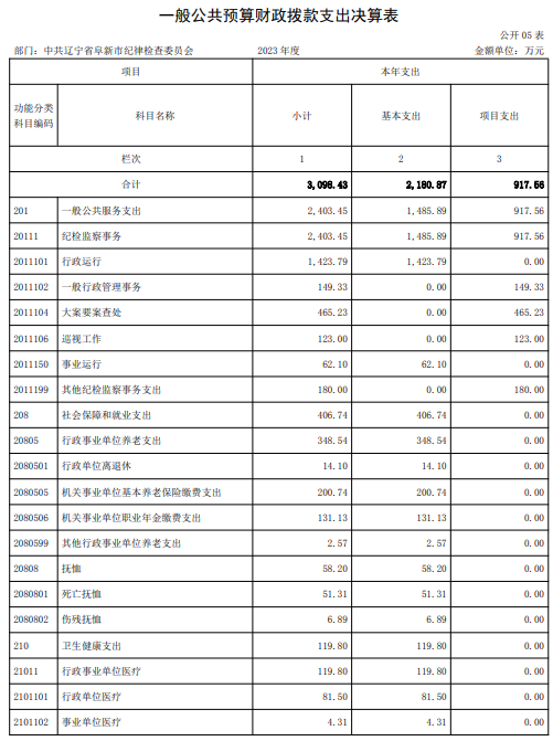 中共辽宁省阜新市纪律检查委员会 2023年度部门决算